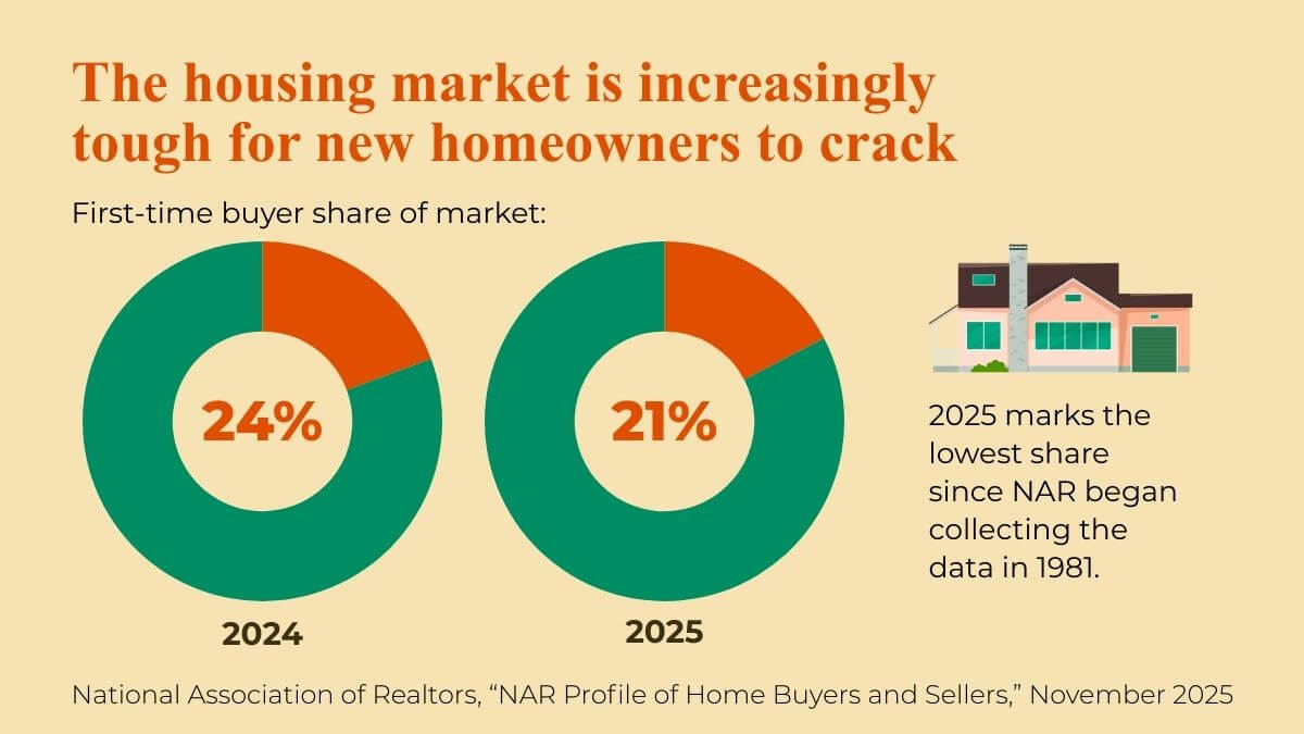 What’s more, the share of all home purchases made by first-time buyers fell to 21 percent in 2025, the lowest since records began being kept in 1981.1